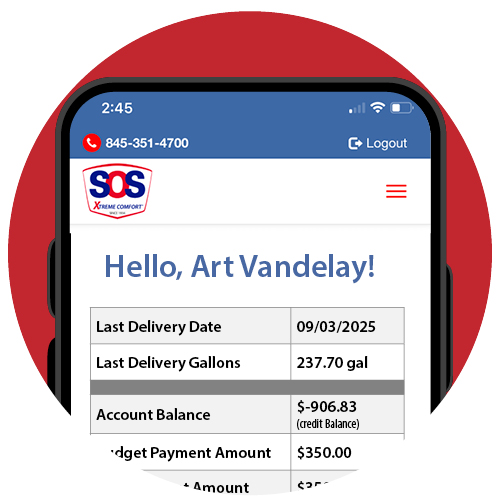 When winter settles in and temperatures drop, peace of mind matters more than ever. The SOS Comfort App helps you stay warm, cozy, and worry free all season long. From the comfort of your couch, you can check your account, view deliveries, make payments, and even order heating oil in seconds. No running outside. No trips to the basement. Just simple control right from your phone.